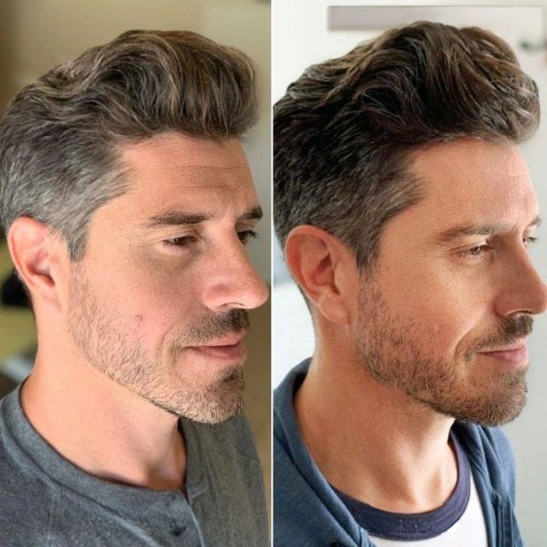 The formula is made from cosmetic-grade minerals and natural pigments, free from ammonia, peroxide, and harsh dyes. It's designed to blend naturally with your facial hair and skin without irritation.